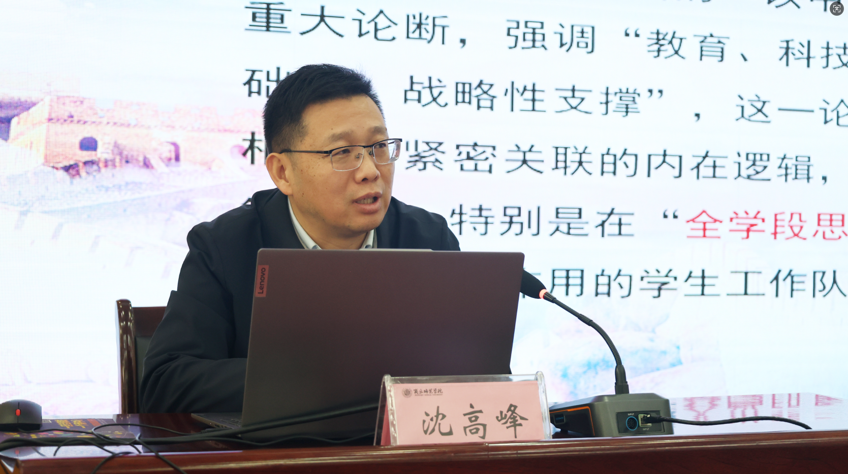 《操作指南》宣讲队员、郑州轻工业大学党委学工部副部长沈高峰以“把握教育规律,创新工作方法”为主题,系统解读了《河南省本科高校学生管理工作分时、分类操作指南》的编制背景、核心理念、实施路径等,重点分析了其中关于学生管理工作在不同时间节点(分时)和针对不同学生群体(分类)的具体操作规范与流程要求。