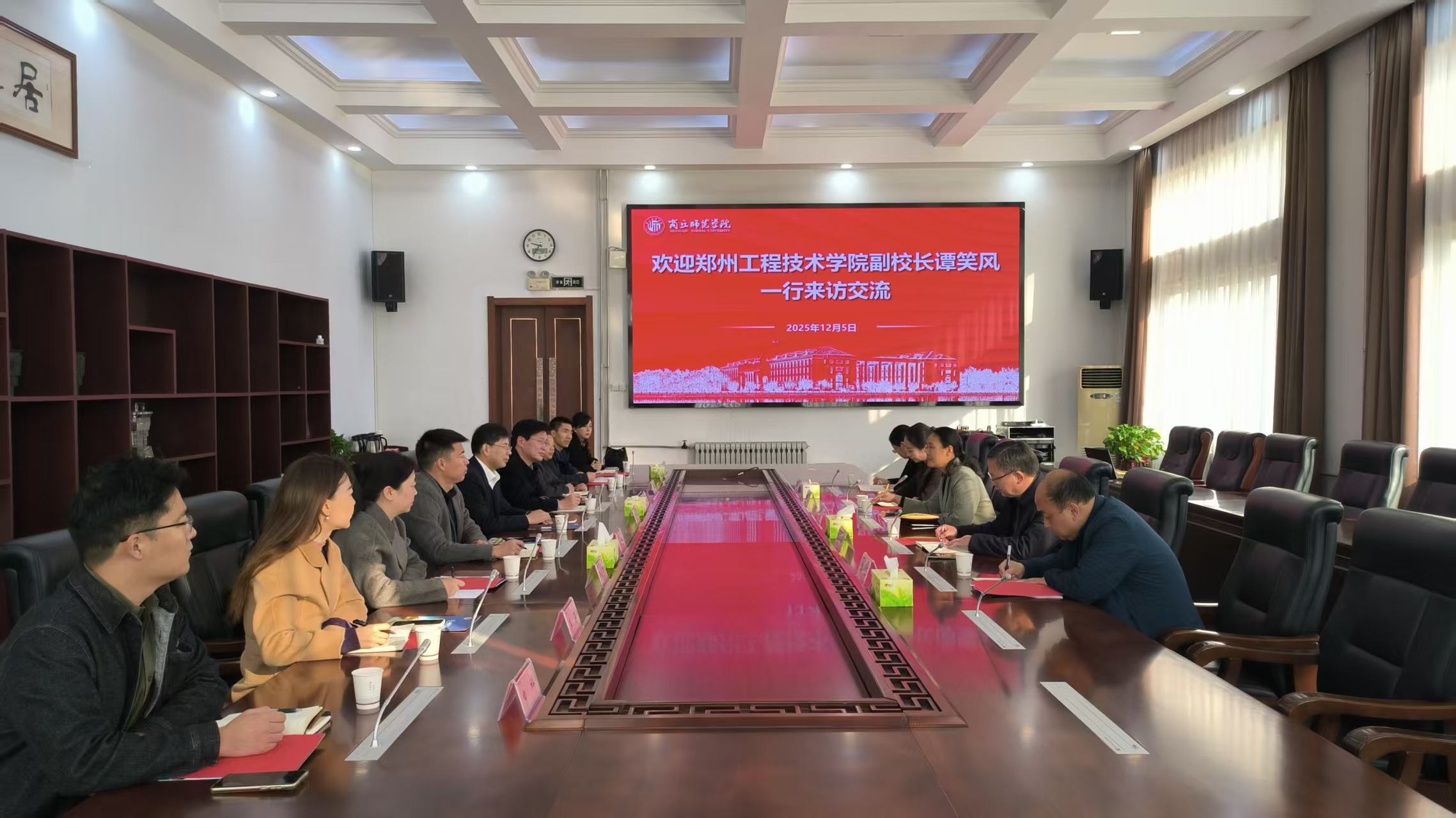 12月5日,郑州工程技术学院副校长谭笑风一行到我校访问交流。副校长王晓征出席座谈会,学生处处长韩坤、副处长袁慧、艺术设计学院党委副书记侯双霞、传媒学院党委副书记高原参会。
