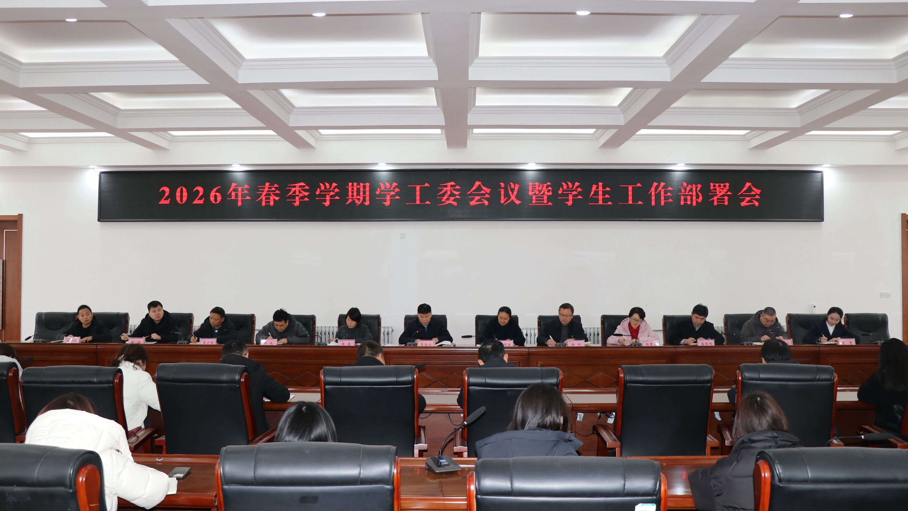3月2日,我校在梁园校区归德楼召开2026年春季学期学工委会议暨学生工作部署会。校党委副书记吴金山、副校长王晓征出席会议,相关职能部门负责人、学生处全体人员、各学院党委副书记、学工办主任参加会议。