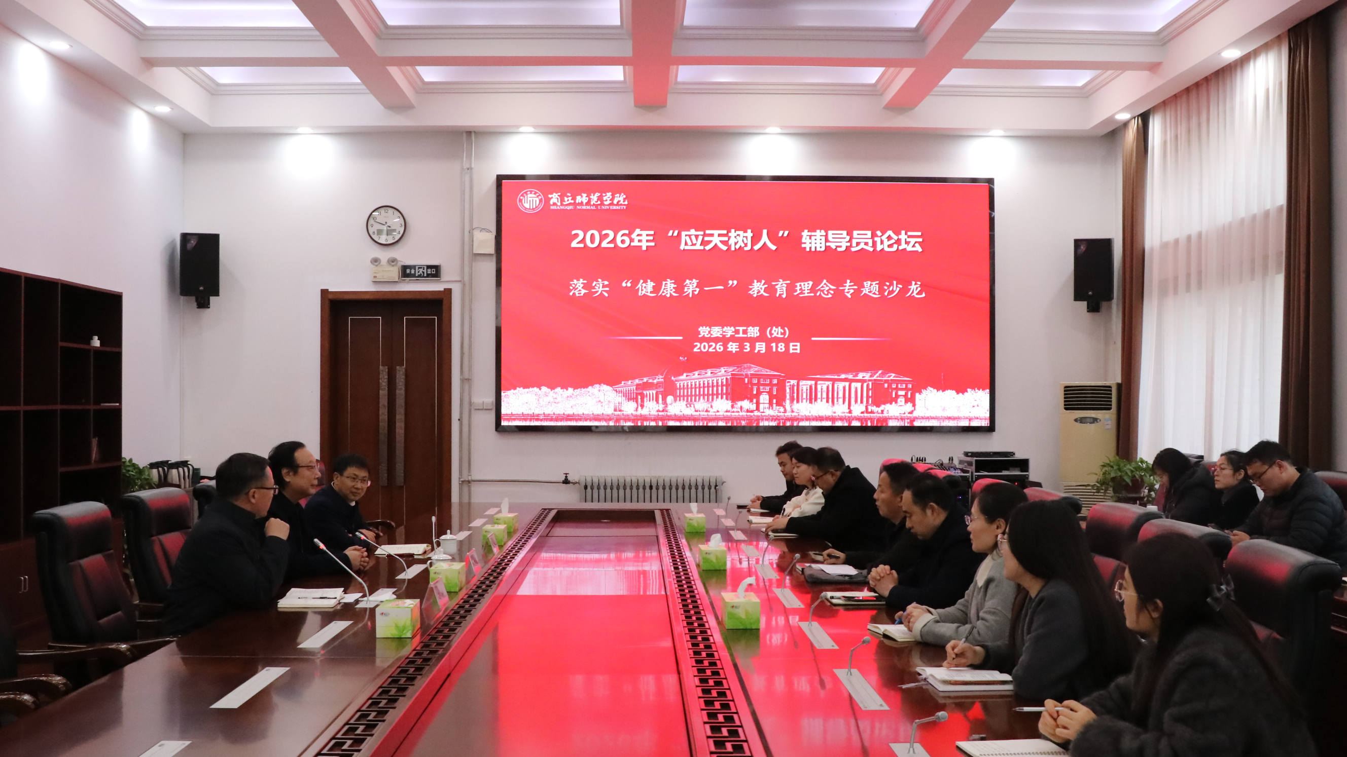 为深入贯彻落实“健康第一”教育理念,进一步提升辅导员队伍的心理育人能力,3月18日,我校在梁园校区归德楼举办2026年首期“应天树人”辅导员论坛。邀请中国心理学会原任理事长、河南师范大学原党委书记赵国祥教授做专题报告。校党委书记张尚字、党委副书记吴金山出席论坛。学生处、校团委全体人员,各学院党委副书记(书记)、全体专兼职辅导员和班主任代表共200余人参会,论坛由吴金山主持。