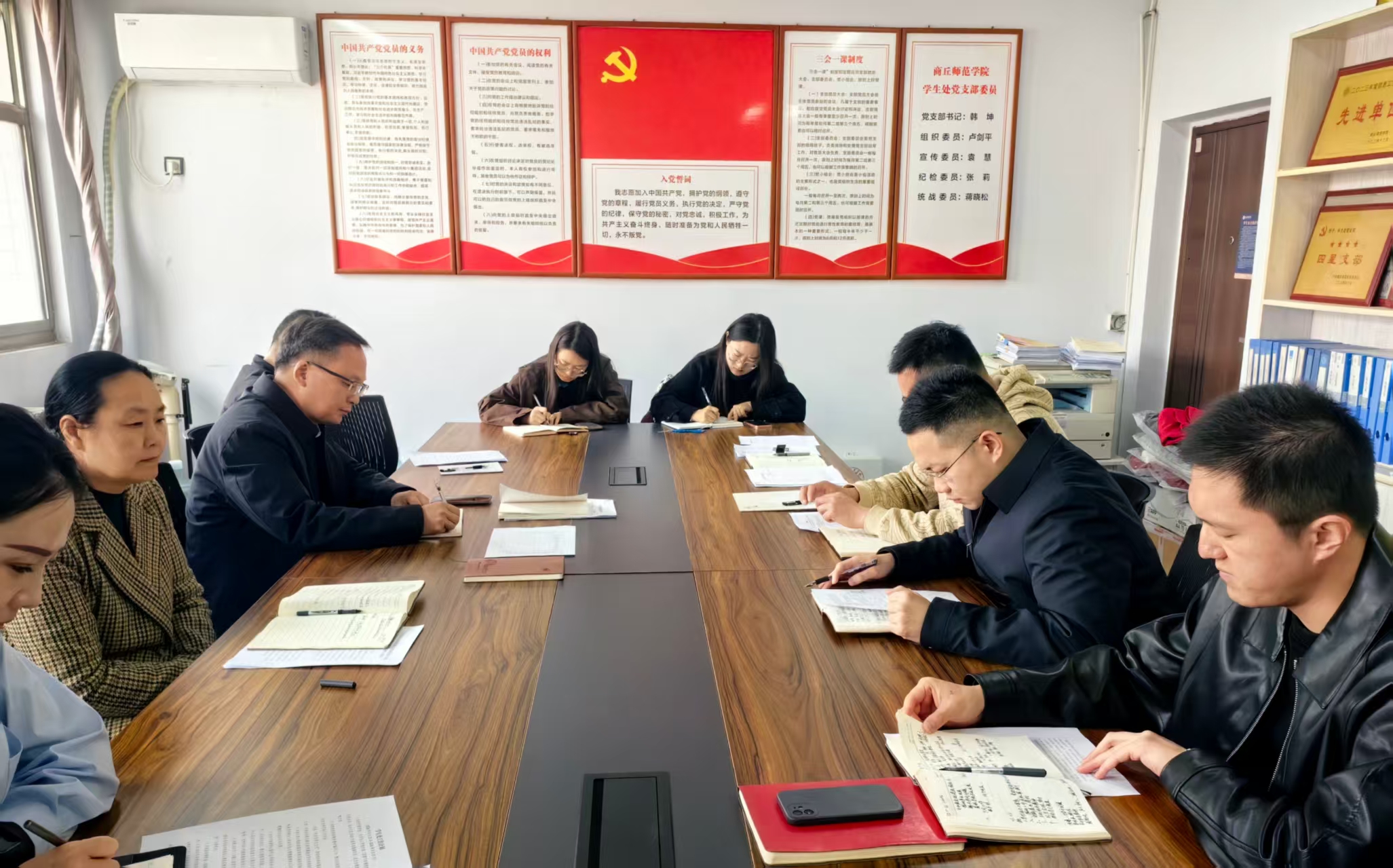 3月23日上午,学生处党支部在应天楼217会议室召开2025年度组织生活会,副校长王晓征以普通党员身份参会,会议由党支部书记韩坤主持,学生处全体党员参加。