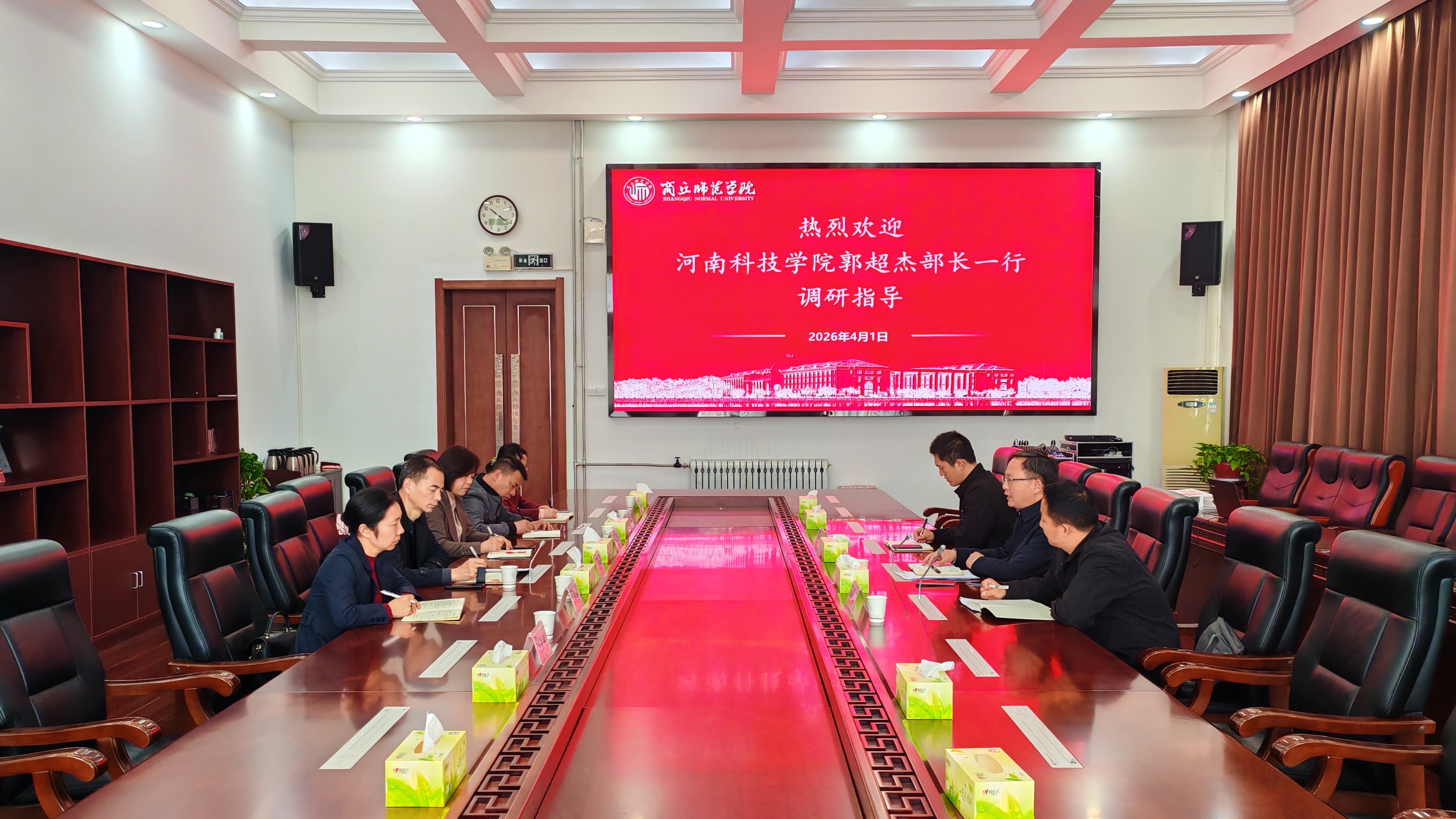 4月1日,河南科技学院党委学工部部长、学生处处长郭超杰一行五人来我校调研交流。会前,副校长王晓征对郭超杰一行的到来表示欢迎,希望两校以此次交流为契机,进一步加强学生工作领域的互学互鉴。调研座谈会由党委学工部部长、学生处处长韩坤主持。