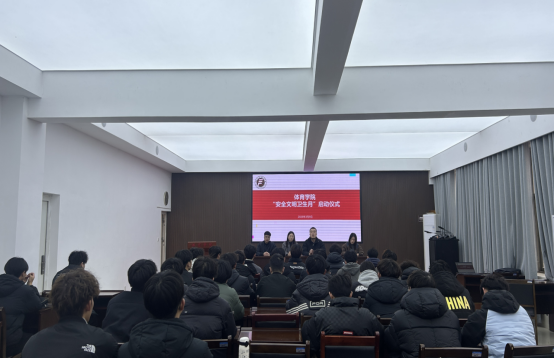 为切实提高我院师生的安全防范意识、文明素养和卫生习惯,营造平安有序、文明有礼、整洁优美的育人环境。3月9日下午,体育学院在121会议室举行“安全文明卫生月”启动仪式。体育学院党委副书记孟琛博、各年级辅导员及学生代表参加启动仪式,仪式由体育学院学工办主任孙烨主持。